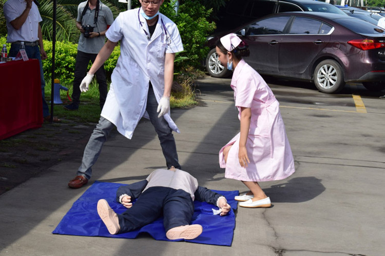 演練情景:模擬液氨站蒸發器管道發生泄漏,造成環境輕微汙染,造成一名員工輕傷,一名員工暈迷倒地傷勢不明。